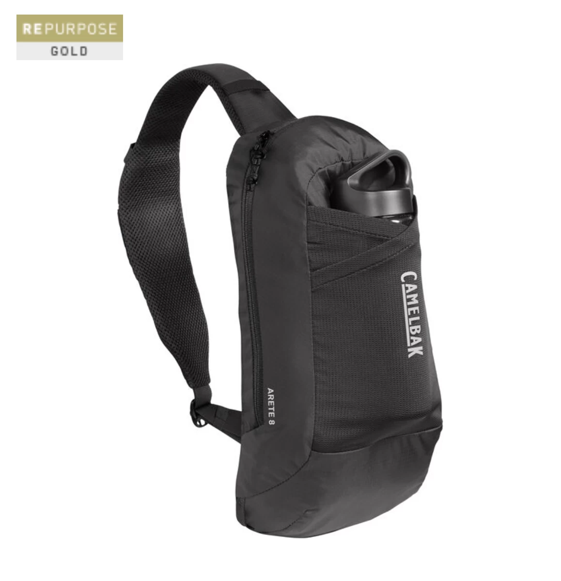 Our new hike pack provides light and durable recycled materials, constructed to withstand any trial on the trail. The Arete™ Sling 8 brings breathable air mesh back panel and strap, supplying long-lasting cool and comfort for your next expedition. We want you to stay hydrated out on the trail, so we’ve included our renowned .6L Tritan Renew bottle with a convenient carry cap. Enjoy alternating action with the easy left and right shoulder carry option and the 1.5L Reservoir compatible stash pocket on shoulder strap. Durable, double-layer stretch overflow pocket provides ample room for your adventure essentials. Repurpose Gold Sustainability Badge: Made with recycled materials, made with safer chemicals, and designed to preserve resources and diminish disposables.
