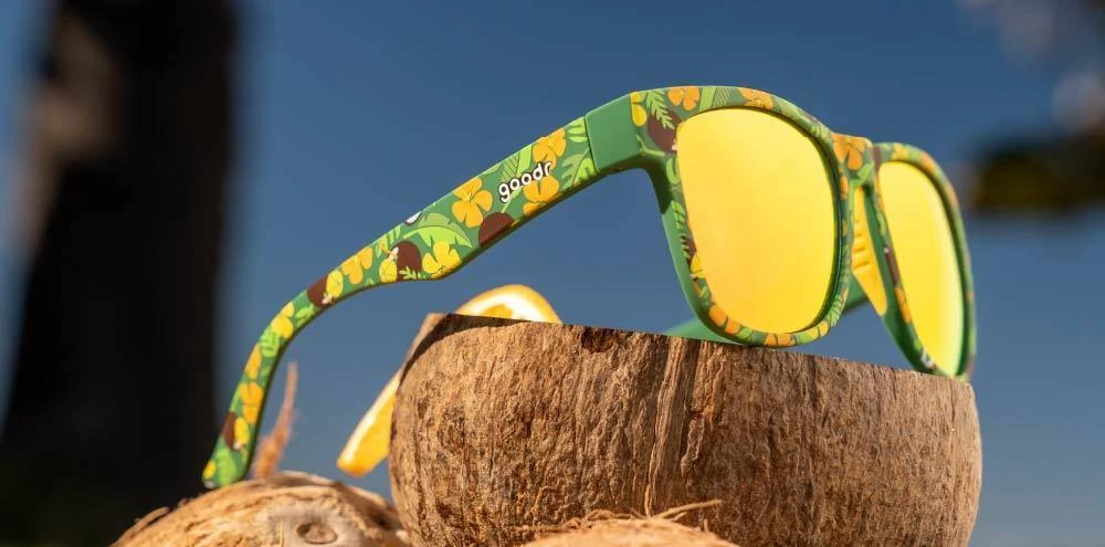 Welcome ashore! Meet TROPICAL OPTICALS, our all-new line of sunnies. These island-themed goodrs will have you knee-deep in rum and beach vibes before you can say, “Carl caught curled krill by the colorful coral.”