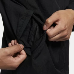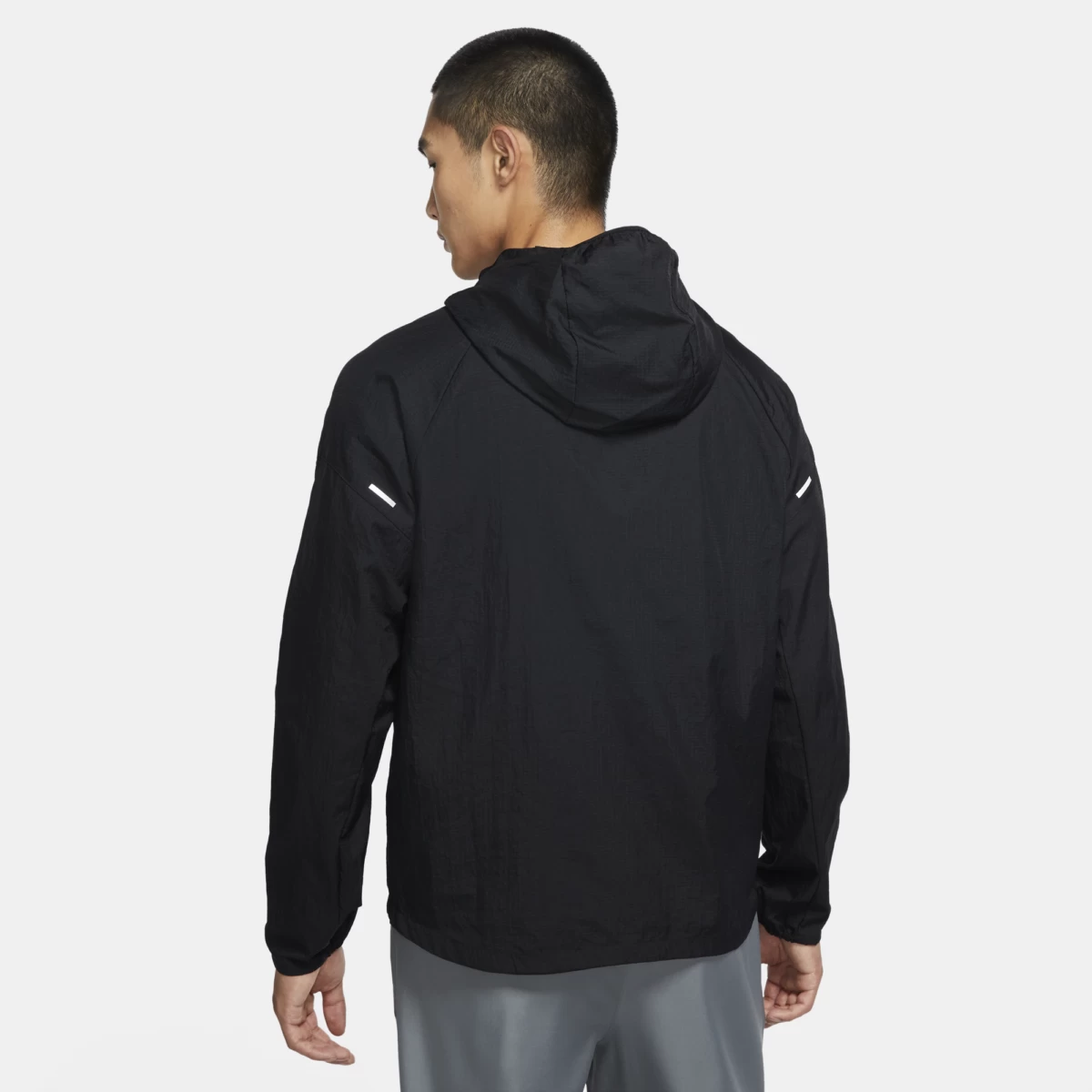 Keep your running routine going in wet conditions. The updated Nike Essential Jacket delivers water-repellent fabric and secure coverage. Its lightweight design can be packed into its own pocket when you need to layer down.