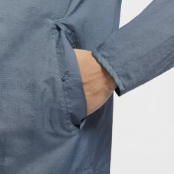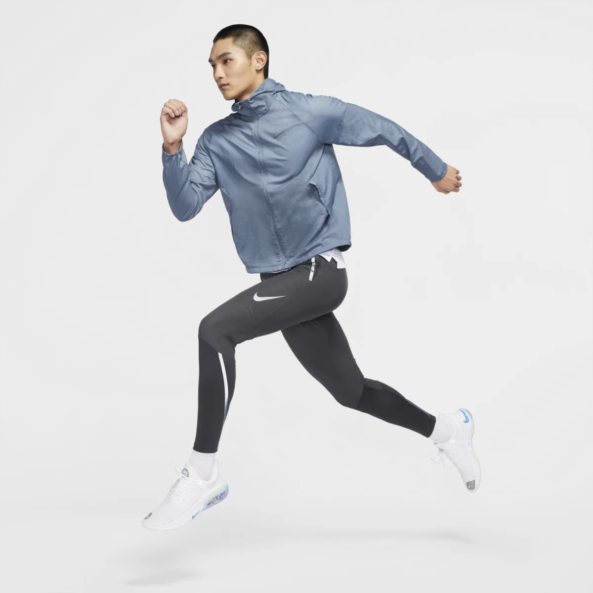 Keep your running routine going in wet conditions. The updated Nike Essential Jacket delivers water-repellent fabric and secure coverage. Its lightweight design can be packed into its own pocket when you need to layer down.