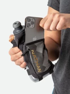 Designed as the ultimate hydration handheld ideal for running, hiking, walking and other sports. The QuickSqueeze 12oz Insulated Handheld features a grip-free, fully adjustable hand strap and storage for your phone and more.