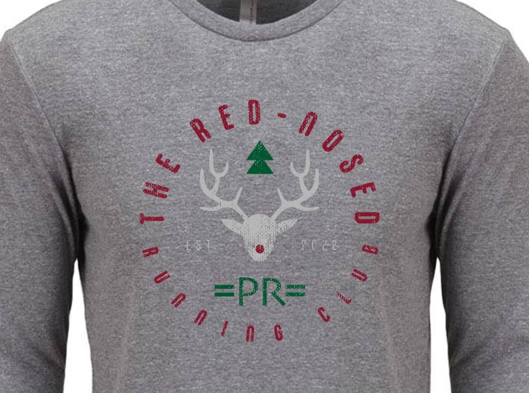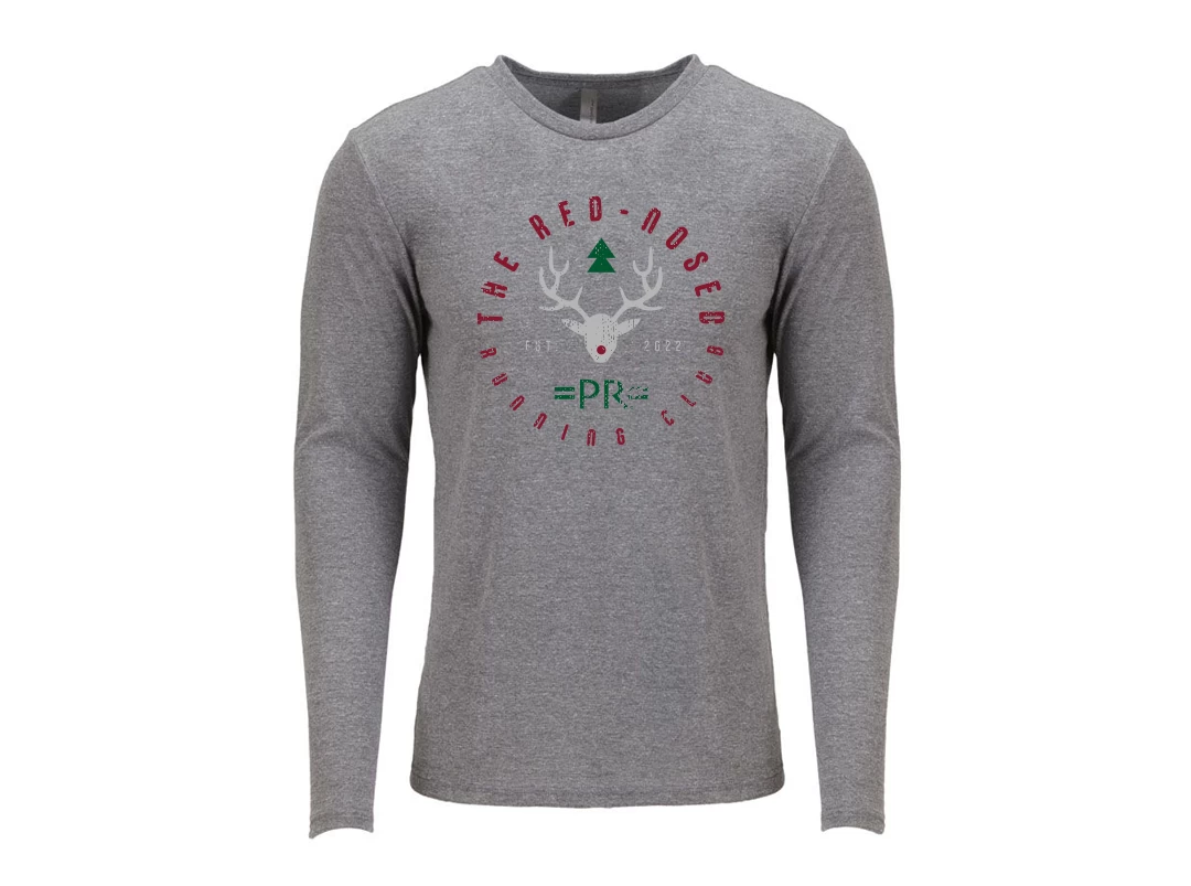 Get in the holiday spirit and join the red-nosed running club! This comfy, long-sleeve shirt is perfect for your holiday race, your walk around the neighborhood to see the lights, or to just lounge around in all season long.