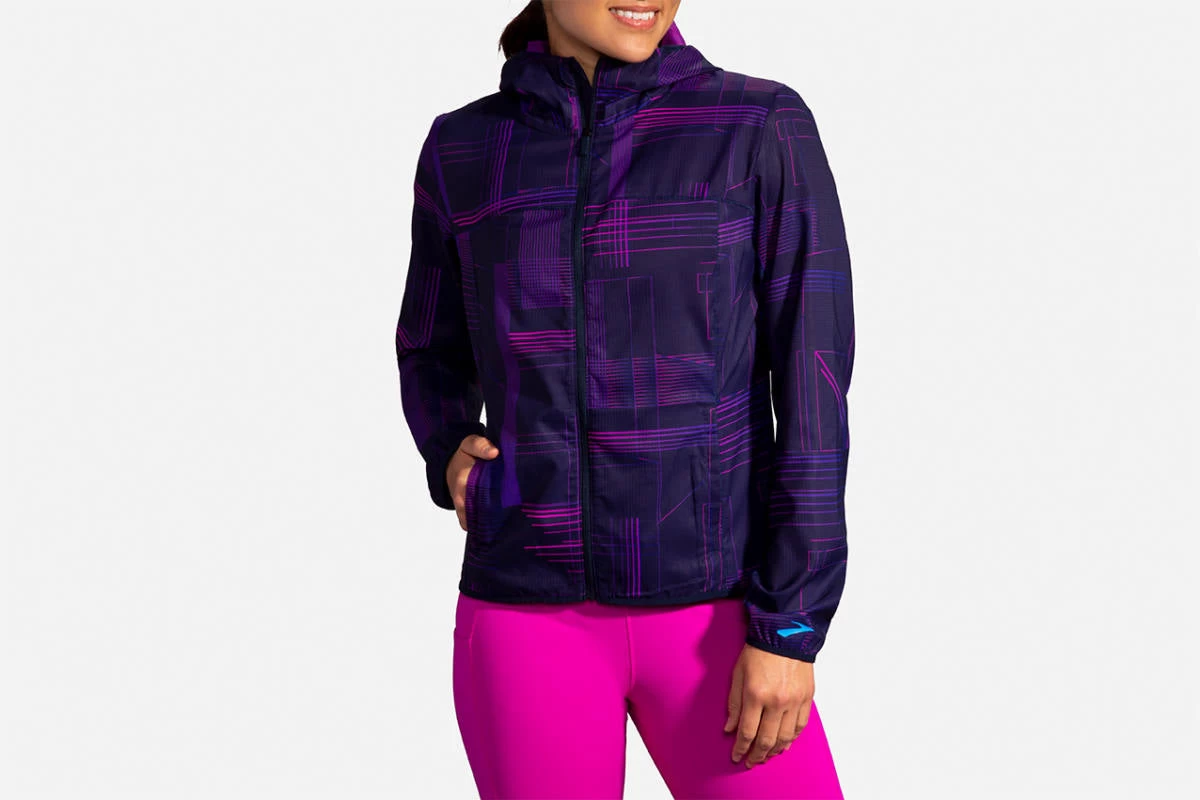 The lightweight, versatile women’s Canopy Jacket provides wind and water protection and a stay-put fit that lets you focus on your run, not your gear.