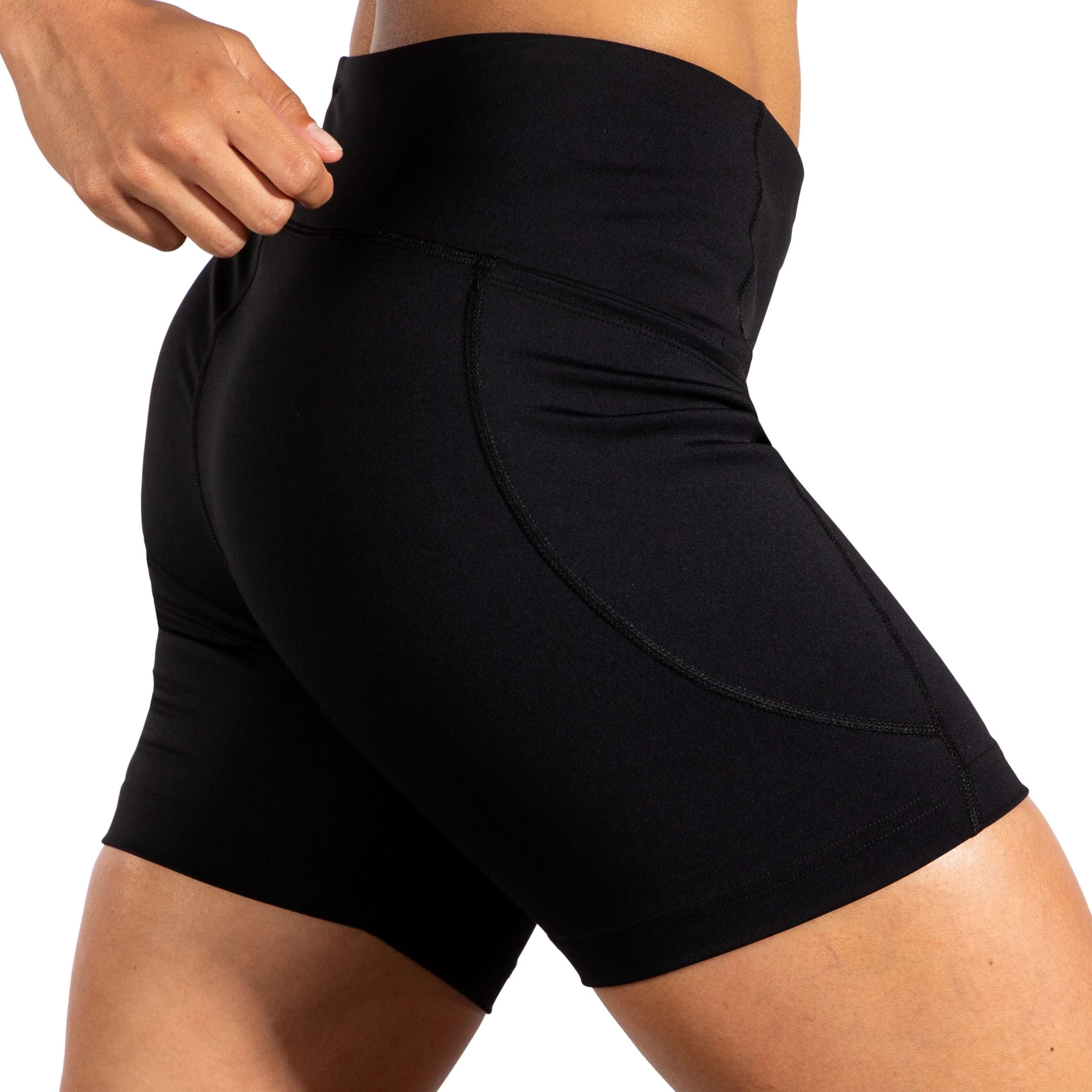 The sleek style of a women’s tight meets all the leg freedom of your favorite shorts. While you move, the waistband — and your stuff — stays put, thanks to a secure fit and side pockets.