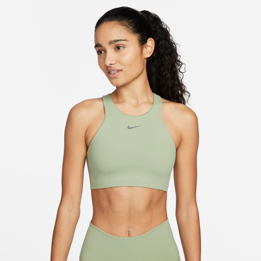 Stay focused on your breathing in this high-neck, full-coverage bra. Made to expand and contract with your inhales and exhales during practice, the flexible, sweat-wicking fabric moves with you while the no-pinch bottom band stays in place. Effortless and lightweight, this bra features a sewn-in spacer lining and smooth, flat seams for support so comfortable you might forget you’re wearing it. This product is made with at least 50% recycled polyester fibers.