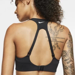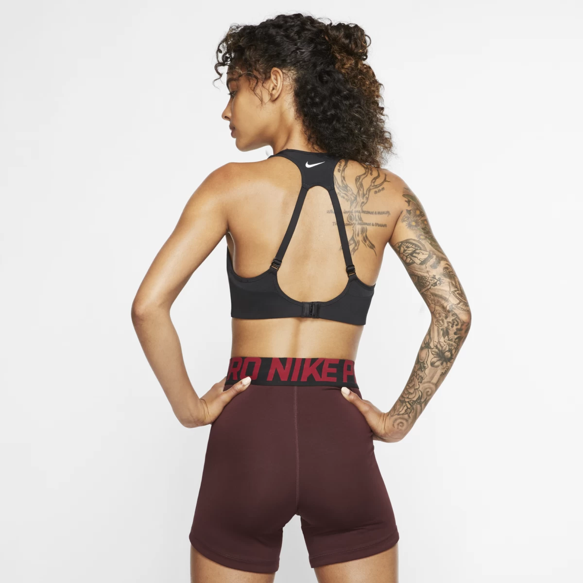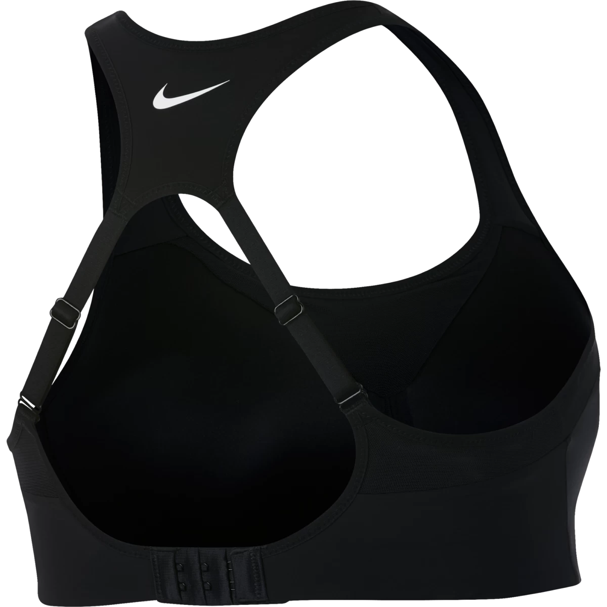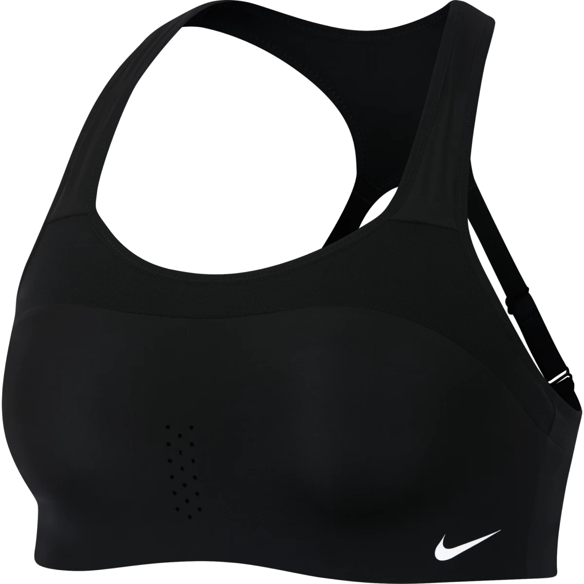 The Nike Alpha Sports Bra gives you our highest level of support with a compressive feel and minimal bounce for a secure fit. Molded cups provide shaping, and it adjusts in the back so you can feel comfortably containedâ””yet still able to breathe. Ventilation on the front and back helps you stay cool through the heat of your workout.