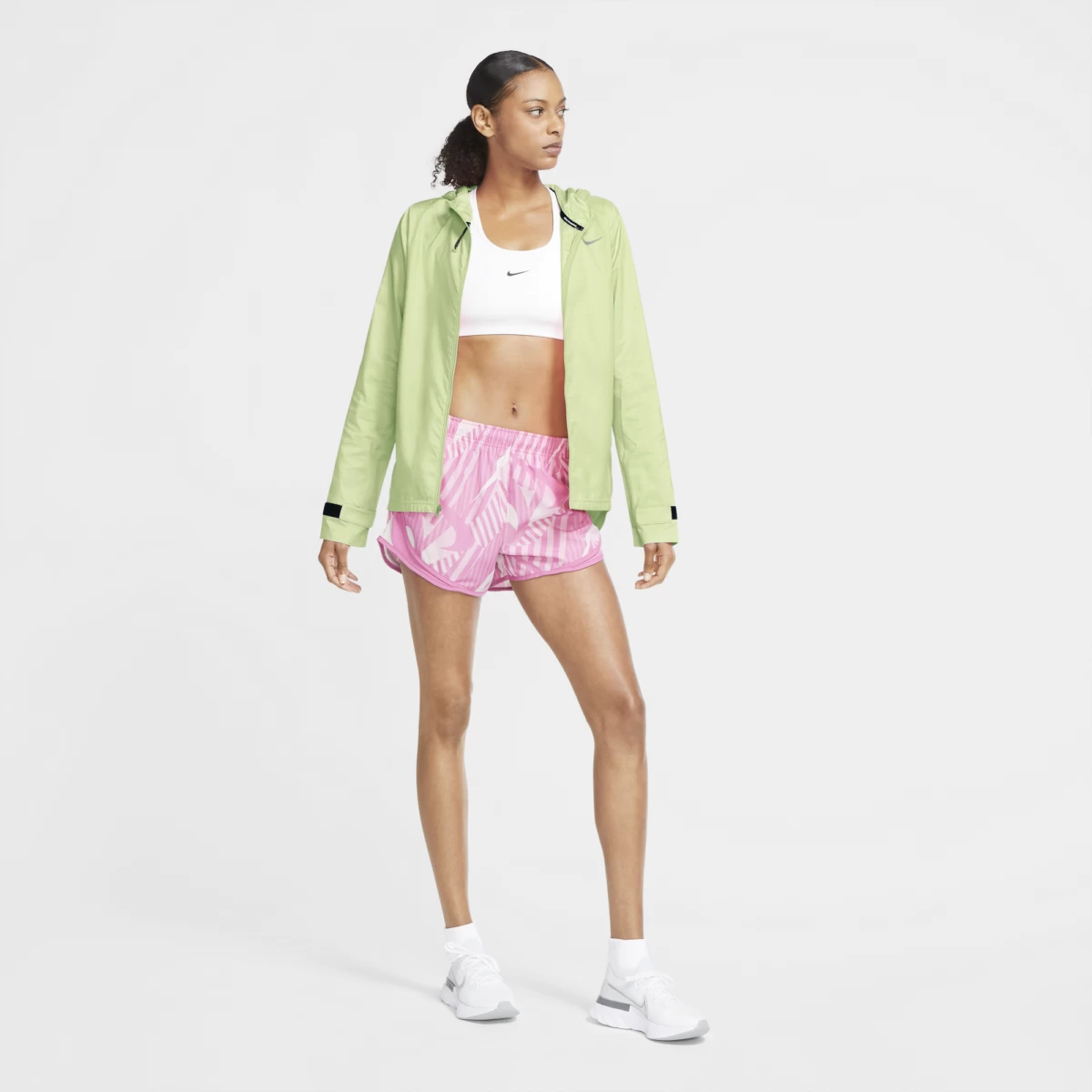 The Nike Essential Jacket helps keep you running when wet weather arrives. Water-repellent fabric combines with hooded coverage to help you stay dry for miles.