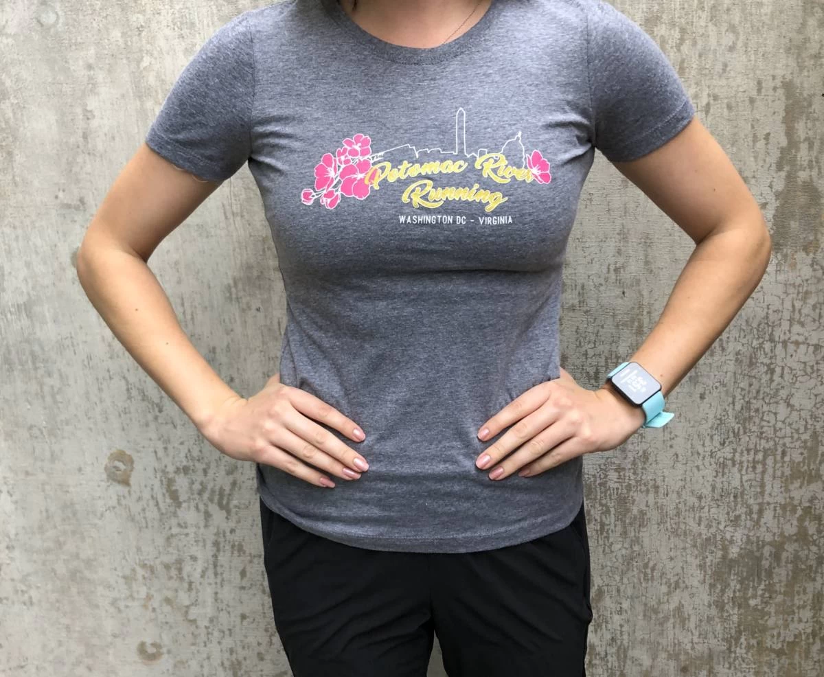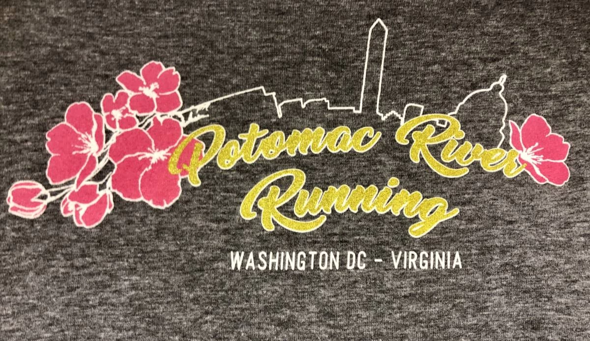 Super soft cotton/poly tee screen printed with Potomac River Running branding and D.C. Cherry Blossoms. Perfect for when you’re not on the run, just running around.